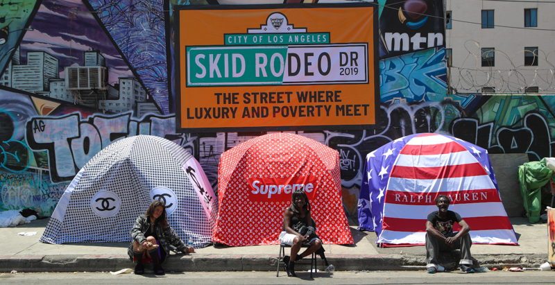 Un’installazione dell’artista britannico Chemical X sul problema dei senzatetto a Los Angeles, inaugurata lo scorso 30 maggio. (Ari Perilstein/Getty Images for Chemical X)